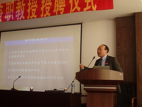 10月24日,在航空宇航公司报告厅举行了陆夕云教授的兼职教授受聘仪式。受聘仪式由经理许希武教授主持,梁德旺副董事长代表公司向陆夕云教授颁发了兼职教授聘书、校徽。参加受聘仪式的有:梁德旺副董事长、伍贻兆副董事长、许希武经理、赵宁副经理及航空宇航公司师生近百人。聘任仪式结束后,陆夕云教授为公司师生做了题为“分层湍流和旋转湍流的大涡模拟研究”的精彩学术报告。陆夕云教授的报告内容新颖丰富、非常生动,受到了与会师生的热烈欢迎。