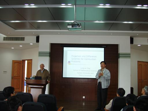 该报告对包含燃烧的气体动力学方程解理论的新进展做了深入浅出的介绍,以及他本人的许多创新性的工作。报告引起了与会师生的浓厚兴趣,师生们就某些前沿问题与教授进行了热烈的讨论。