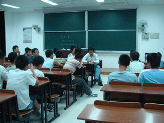 晚上7:00,江宁校区2110教室,新生对院领导和班主任的到来报以热烈的掌声和欢呼声,副经理童明波从面上总体介绍了公司的专业设置和专业前景,并对新生提出了希望和要求。之后,全院523名新生以班级为单位,在7号楼17个教室与班主任面对面亲切交流,每个小会场虽风格各异,但气氛同样友好热烈。良好的开端是成功的一半,相信班主任的密切合作,将与辅导员工作相得益彰,成为06级工作顺利开展强有力的保障和支撑。