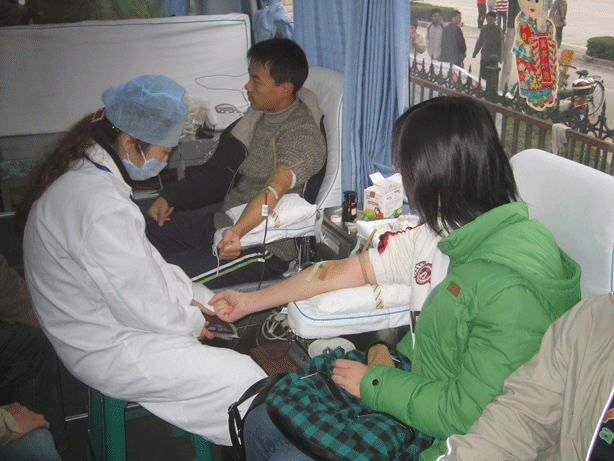 13点整,献血车到达了南航大医院,献血活动正式开始。搬医疗器具、组织同学填表、维持秩序……0006102班的同学在忙碌中用微笑的脸庞,温和的态度对待每一个人。医院大厅里没有桌子,献血的同学就趴在墙上填表,并积极配合组织者的工作,保持着大厅的安静,维持了一个良好的秩序,展现了南航人较高的素质。体检过程中,有几个献血者得知自己由于感冒而不能献血时,还不忘追问组织者什么时候再办这样的献血活动。据周科长介绍,当天成功献血的人员达93人。