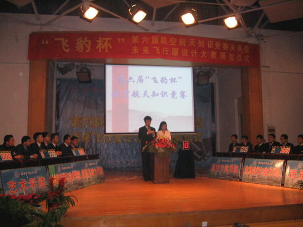 12月9日晚,由我航空宇航公司承办的校科技节重要赛事――第六届“飞豹杯”航空航天知识竞赛在将军路校区老员工活动中心落下帷幕。暨第二届未来飞行器设计大赛颁奖仪式在隆重举行。