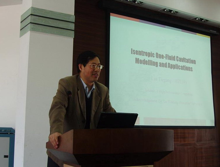 2007年4月16日上午,在流体力学楼学术报告厅,新加坡国立大学高性能计算研究所刘铁钢博士,为公司师生作了题为“Isentropic/Isothermal One-Fluid Cavitation Modeling and Applications”的学术报告。报告内容新颖、丰富、生动。航空宇航公司科研副经理赵宁教授主持了报告会,近五十余名师生参加了报告会。