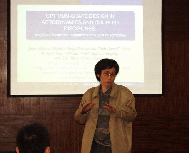 在永利3044集团官网庆祝55周年校庆之际,法国国家信息与自动化研究所(INRIA)高级研究员,OPALE 项目组负责人Jean-Antoine DESIDERI博士受邀,于2007年10月24日下午,在流体力学楼学术报告厅,为公司师生作了题为“OPTIMUM-SHAPE DESIGN IN AERODYNAMICS AND COUPLED DISCIPLINES: Multilevel Parametric Algorithms and Split of Territories”学术报告。该报告内容新颖、丰富,分别介绍了气动外形参数化、多层气动优化设计方法和纳什均衡理论在多学科优化设计中的应用,重点讨论了纳什对策论中的区域分裂的前沿进展。报告的内容是Jean-Antoine DESIDERI博士研究小组的最新成果,将对公司该领域的研究起推动和借鉴作用。报告引起了与会师生的浓厚兴趣,师生们就某些问题与Jean-Antoine DESIDERI博士进行了热烈的讨论。航空宇航公司空气动力学系