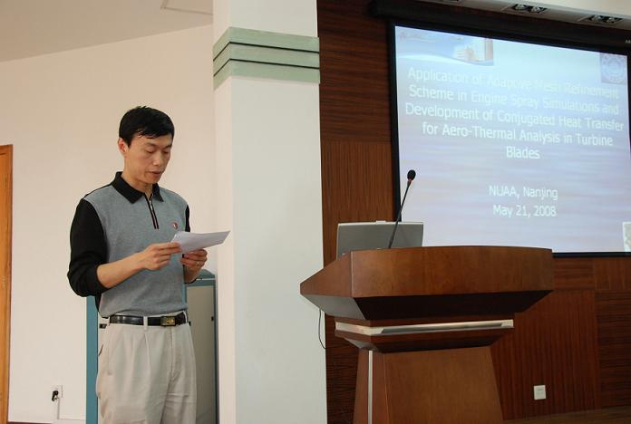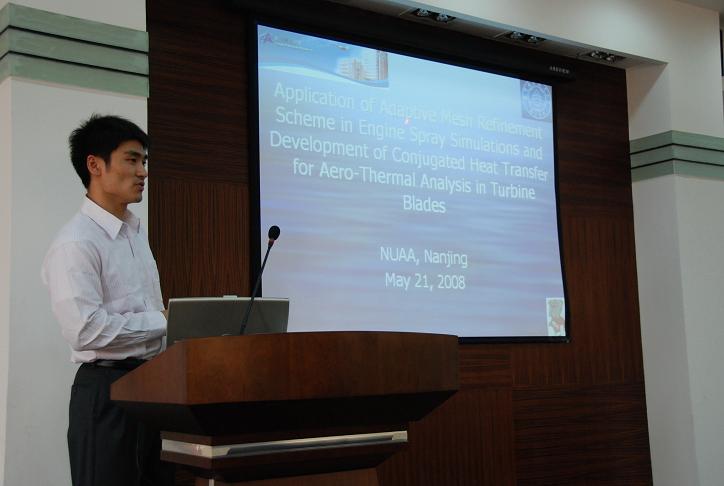 2008年5月21日下午,在流体力学楼学术报告厅,薛庆栾博士为公司师生作了题为“Application of Adaptive Mesh Refinement Scheme in Engine Spray Simulations and Development of Conjugated Heat Transfer for Aero-Thermal Analysis in Turbine Blades”的学术报告。报告介绍了多相流计算的发展方向,特别强调了气动燃烧过程的CFD模拟和气固耦合计算的应用,通过几个工程应用的例子,薛博士阐述了燃烧喷油过程模拟的重要性和相关问题,特别讲解了适应性网格计算加速工程设计的意义,引起了与会师生的浓厚兴趣,师生们就某些问题与薛博士进行了热烈的讨论。报告的内容是薛博士研究小组的最新成果,将对公司该领域的研究起到推动和借鉴作用。
