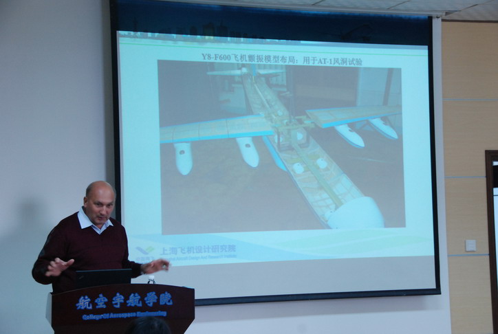 访问期间奥洛夫・ 米克拉分别做了题为“复合式机翼的综合研究”、“研制新型飞机的气动实验研究大纲”、“超轻型背囊式飞机项目”、“气动模型上的动力装置模拟机”、“结冰条件下飞机适航取证气动研究大纲”等五场学术报告。每场报告结束后,现场老师和员工就报告内容与奥洛夫・ 米克拉进行了积极讨论。航空宇航公司经理赵宁教授主持了报告会,全校师生累计二百余人参加了报告会。