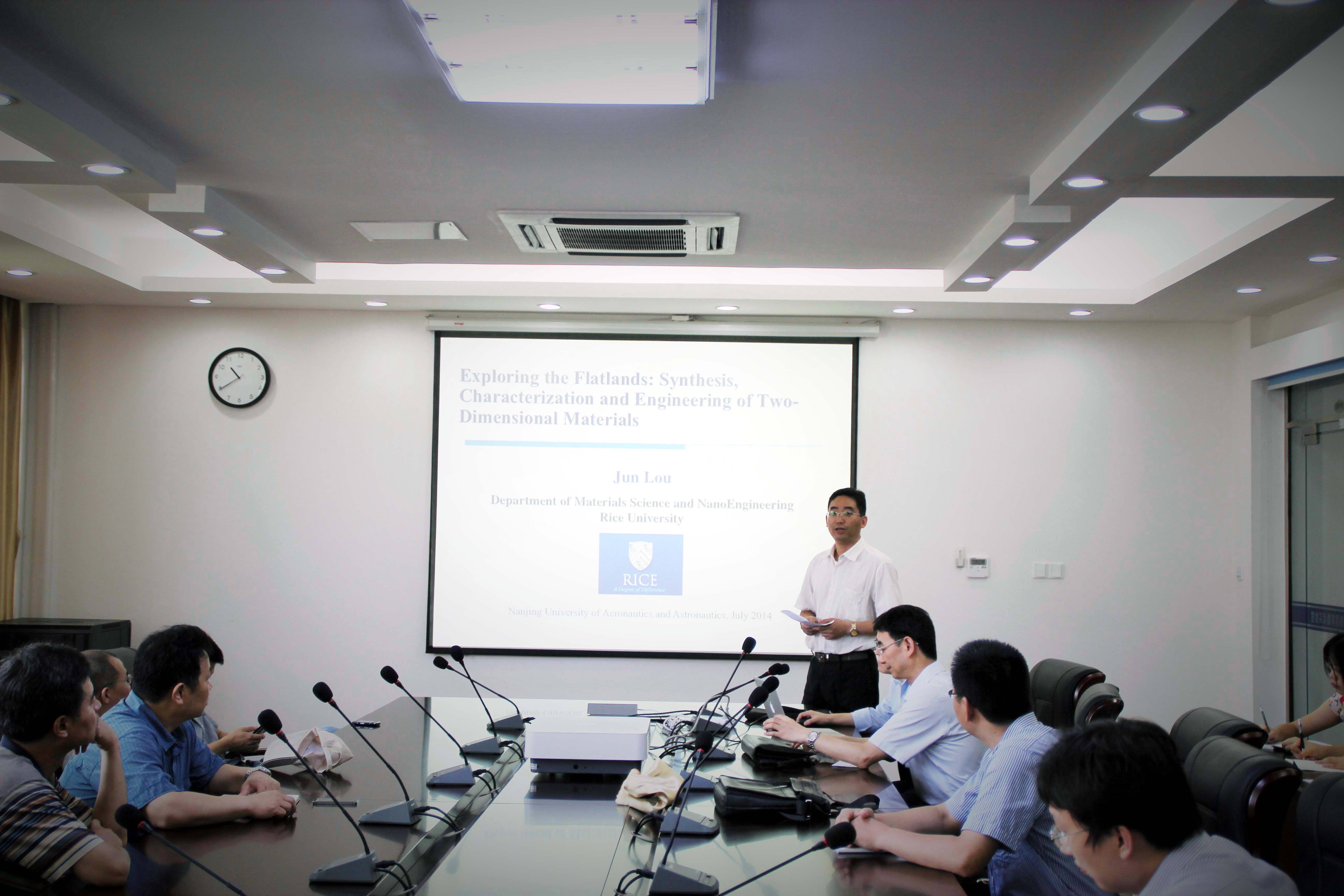 应公司航空宇航公司机械结构力学及控制国家重点实验室张斌教授邀请,美国莱斯大学材料科学及纳米工程公司Jun Lou教授于2014年7月8日至9日来公司进行了学术访问。