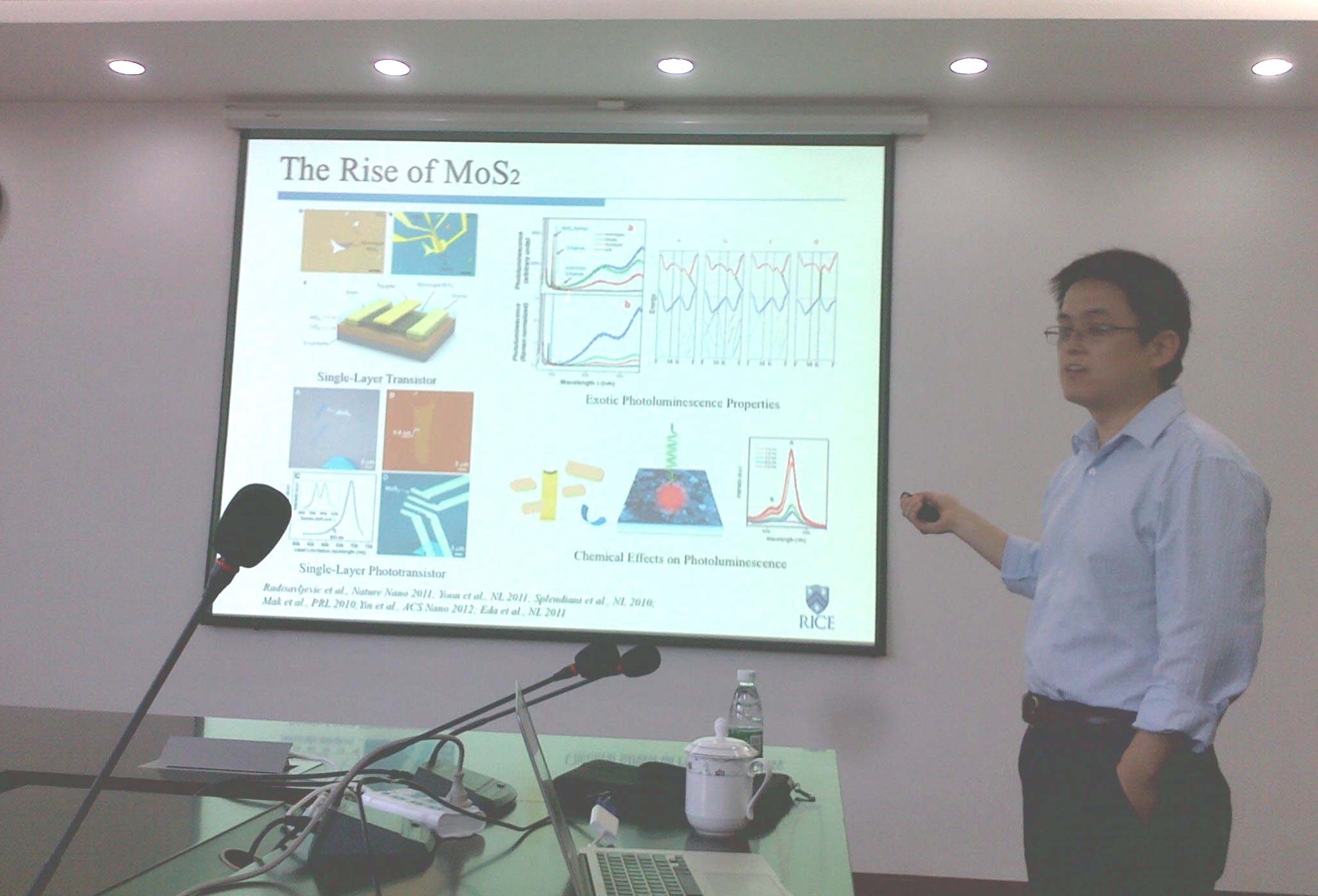 访问期间,Jun Lou教授为公司师生做了题为“Exploring the Flatlands: Synthesis, Characterization and Engineering of Two-Dimensional Materials”的学术报告。报告内容涉及二维材料的合成、表征、工程应用等,重点讲述了纳米电子器件模型、石墨烯动态断裂试验等。讲学结束时Jun Lou教授与参会师生开展了热烈的互动讨论,参会师生从讨论中加深了对于二维晶体材料国际前沿领域的了解。