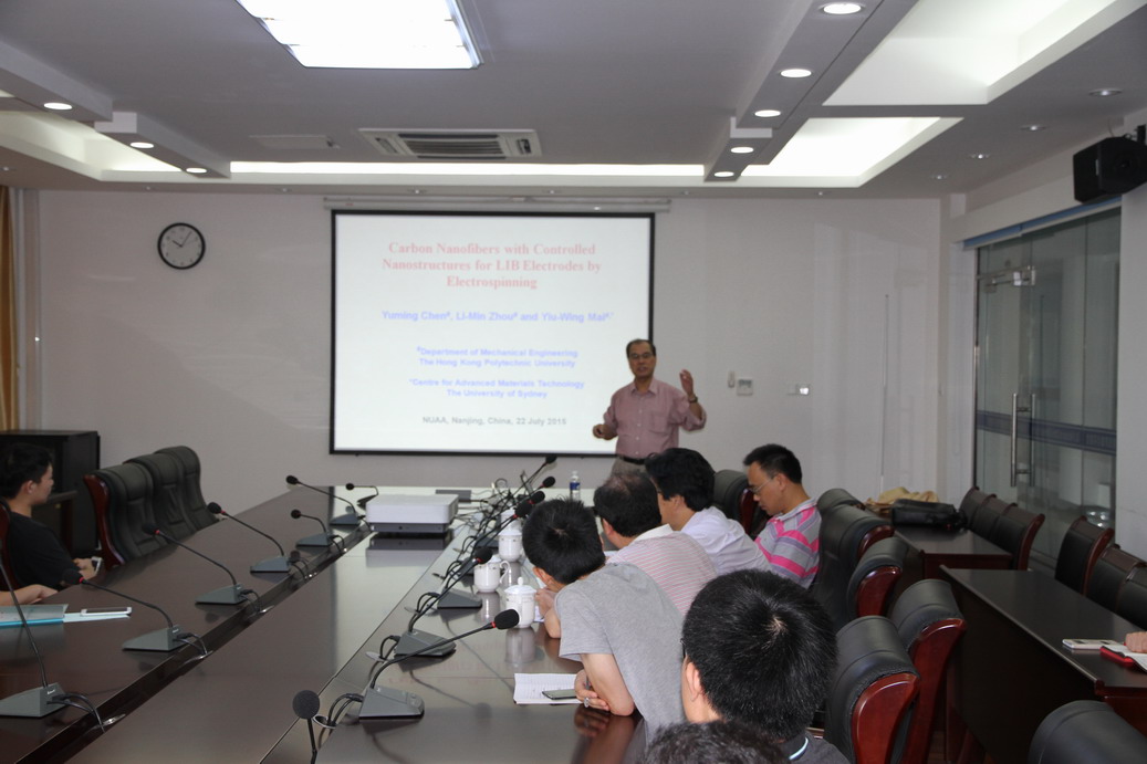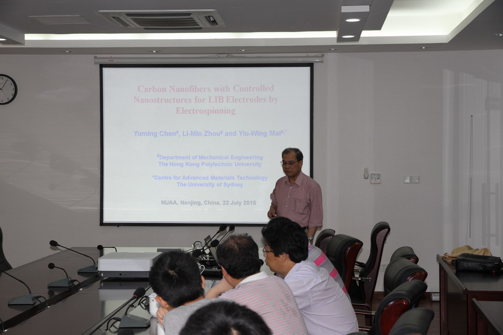 应公司机械结构力学及控制国家重点实验室高存法教授邀请,澳大利亚悉尼大学教授、澳大利亚联邦杰出学者、澳大利亚科公司和工程院两院院士、英国皇家学会外籍院士Yiu-Wing Mai(米耀荣)教授于2015年7月20日至7月25日访问了公司,并于7月22日为公司师生做题为“Carbon Nanofibers with Controlled Nanostructures for LiB Electrodes by Electrospinning”的学术报告。