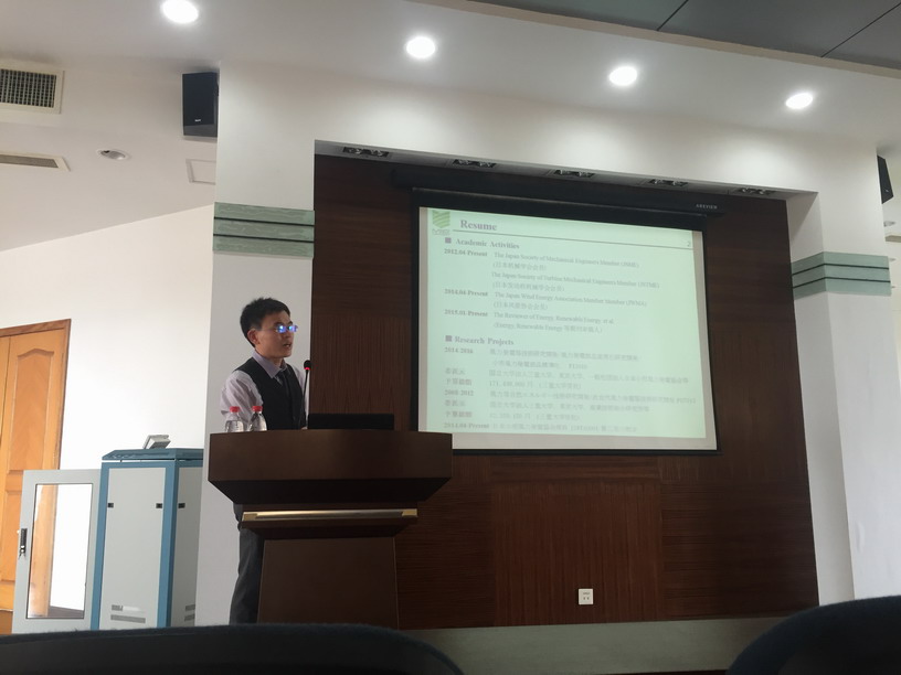 王同光教授邀请,日本国立三重大学李庆安研究员于2016年5月4日访问了公司,并为公司师生做题为“Study on aerodynamic forces and flow field of a straight-bladed vertical axis wind turbine”的学术报告,介绍了直线翼垂直轴风力机参数优化、风洞试验和外场试验等方面的研究成果,对公司风力机空气动力学研究工作具有借鉴作用。王同光教授主持了此次报告会。