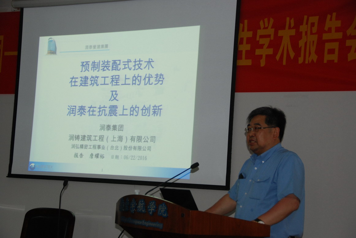 应航空宇航公司土木工程系余红发教授邀请,台湾润泰集团-上海润铸建筑工程总经理詹耀裕先生于2016年6月22日访问了公司,为公司师生做题为“预制装配式技术在建筑工程上的优势及润泰在抗震上的创新”的学术报告。报告内容丰富、生动、精彩,介绍了润泰预制装配式混凝土构件在文明施工、质量、工期和成本等方面的优势,强调了“套筒式连接器”在装配式建筑结构中的重要作用。在预制构件的生产制造领域,润泰集团近20年来创建了成熟的“游牧式预制工法”,提高了构件的生产效率,降低了制造成本,实现了可持续发展方向,对公司土木工程学科的相关科研工作具有借鉴作用。