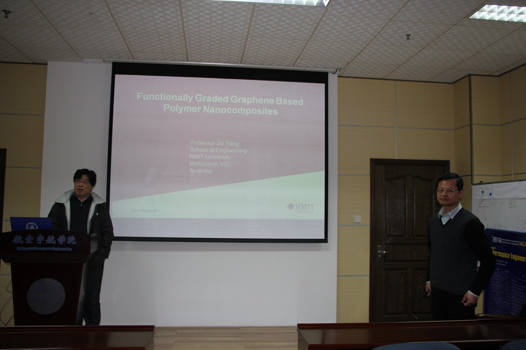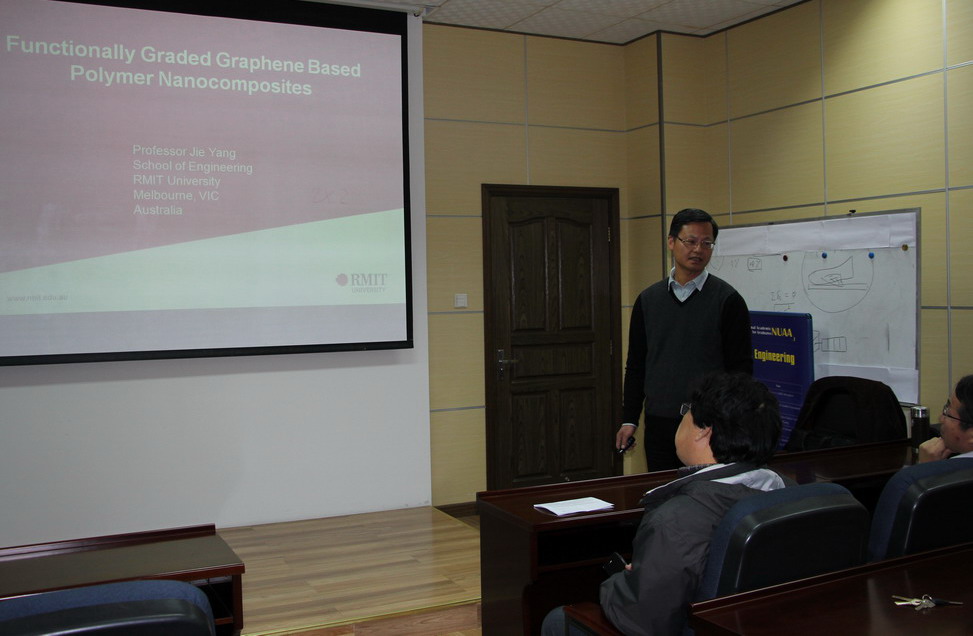 应公司机械结构力学及控制国家重点实验室高存法教授邀请,澳大利亚皇家墨尔本理工大学工程公司Jie Yang教授于2016年12月9日至10日访问了公司,并于12月9日为公司师生做了题为“Functionally Graded Graphene Reinforced Polymer Nanocomposites”的学术报告。报告结束后Jie Yang教授与在场的师生就相关领域的研究进行了交流和讨论。师生们认真聆听,踊跃提问,受益匪浅。高存法教授主持了报告会。