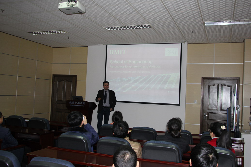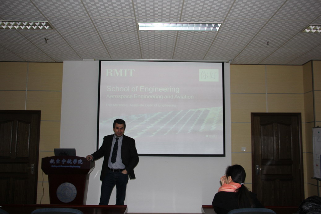 应公司机械结构力学及控制国家重点实验室高存法教授邀请,澳大利亚皇家墨尔本理工大学航空航天工程公司副经理Pier Marzocca教授于2016年12月9日至10日访问了公司,并于12月9日为公司师生做了题为“Aerospace Engineering & Aviation at RMIT and Activities of the Sir Lawrence Wackett Aerospace Research Centre”的学术报告。报告结束后Pier Marzocca教授与在场的师生就相关领域的研究进行了交流和讨论。师生们认真聆听,踊跃提问,受益匪浅。公司副经理沈星教授主持了报告会。