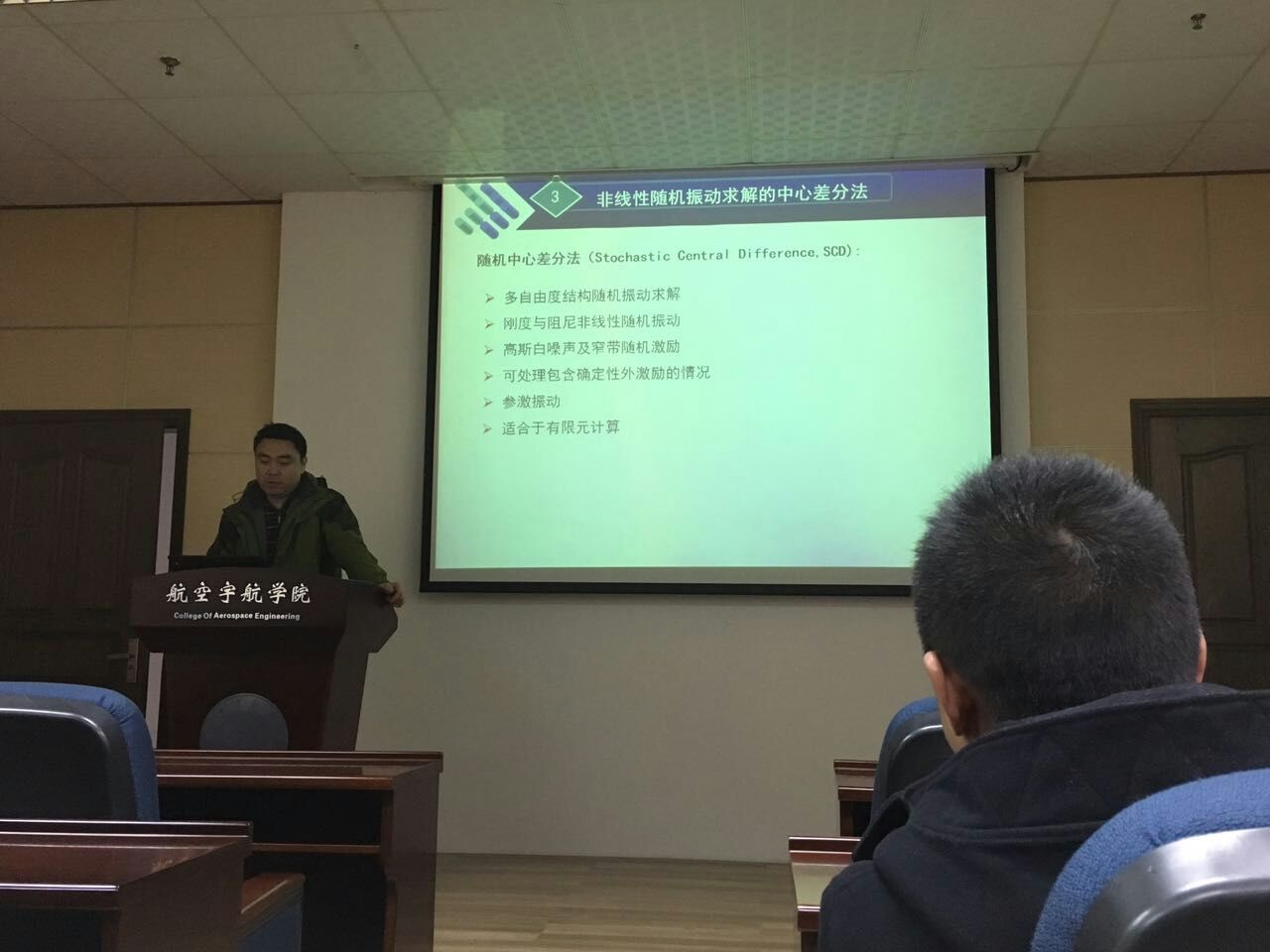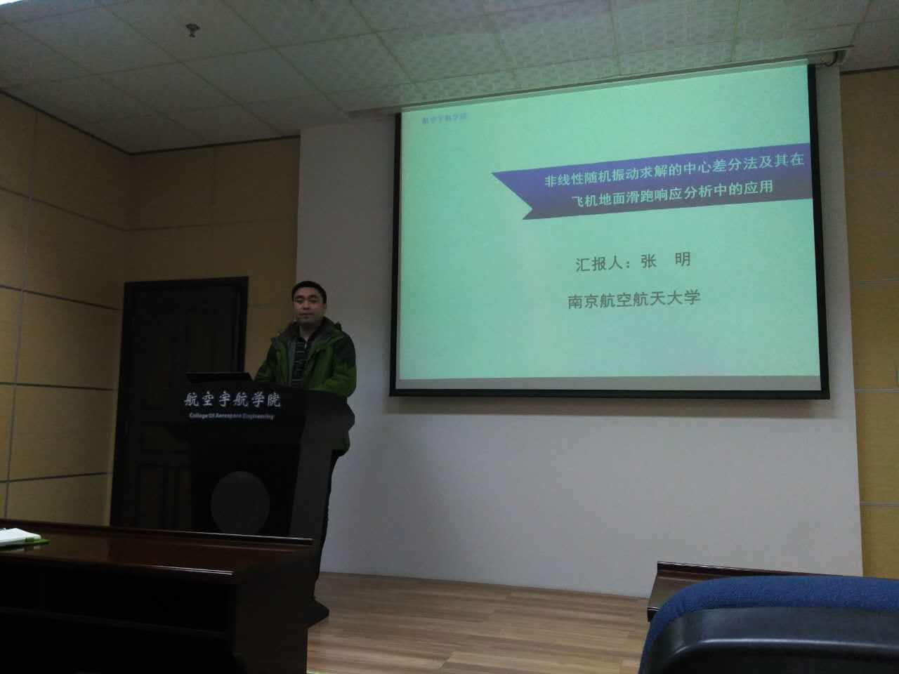按照校人事处关于公派留学回国教师的要求,航空宇航公司飞行器系张明副教授于2017年1月9日为公司师生作了题为“非线性随机振动求解的随机中心差分法及其在飞机地面滑跑响应分析中的应用 ”的学术报告。报告介绍了其在美国留学期间所开展的非线性随机振动及飞机地面滑跑响应分析的系列研究工作。