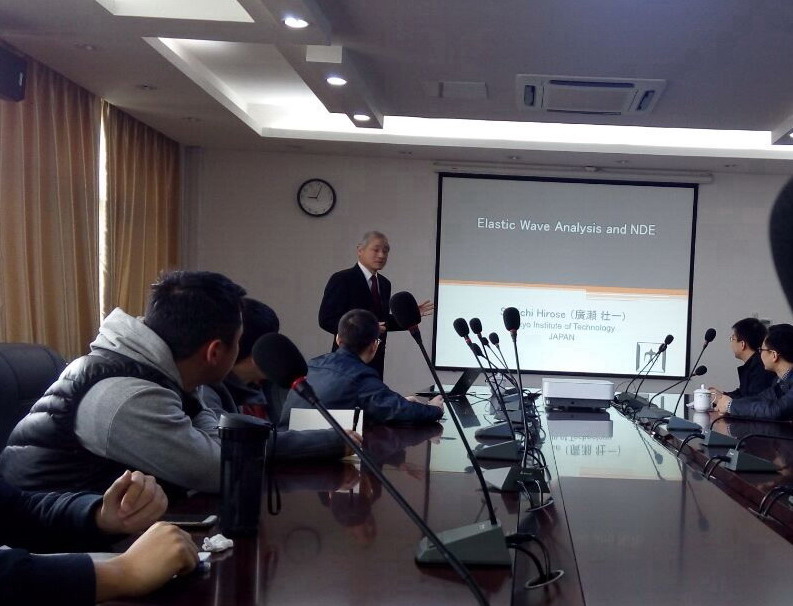 应公司航空宇航公司机械结构力学及控制国家重点实验室钱征华教授的邀请,日本东京工业大学Sohichi HIROSE教授于2017年3月28日至30日访问了公司,并于3月29日为公司师生做了题为“Elastic Wave Analysis and NDE”的学术报告。报告介绍了基于卷积的时域边界元方法,并详述了该方法的理论推导,及该方法在非线性超声波中的应用;同时,又介绍了弹性波在无损检测领域的应用,并详述了如何采用弹性波的近似解来探测缺陷,及超声导波的水下探测。报告结束后Sohichi HIROSE教授与在场的师生就相关领域的研究进行了交流和讨论。师生们认真聆听,特别是博士生们踊跃提问,受益匪浅。钱征华教授主持了报告会。