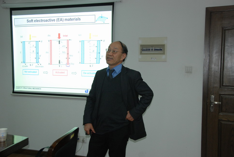 应公司机械结构力学及控制国家重点实验室高存法教授邀请,公司客座教授、欧洲科公司院士、德国锡根大学土木工程系主任、著名力学专家张传增教授于2017年4月8日至9日访问了公司,并于4月9日为公司师生做题为“Propagation and manipulation of acoustic and elastic waves”的学术报告。报告介绍了他的课题组在弹性波理论及其应用等方面的研究进展,并与在场的师生就相关领域的研究进行了交流和讨论。师生们认真聆听,踊跃提问,受益匪浅。高存法教授主持了报告会。