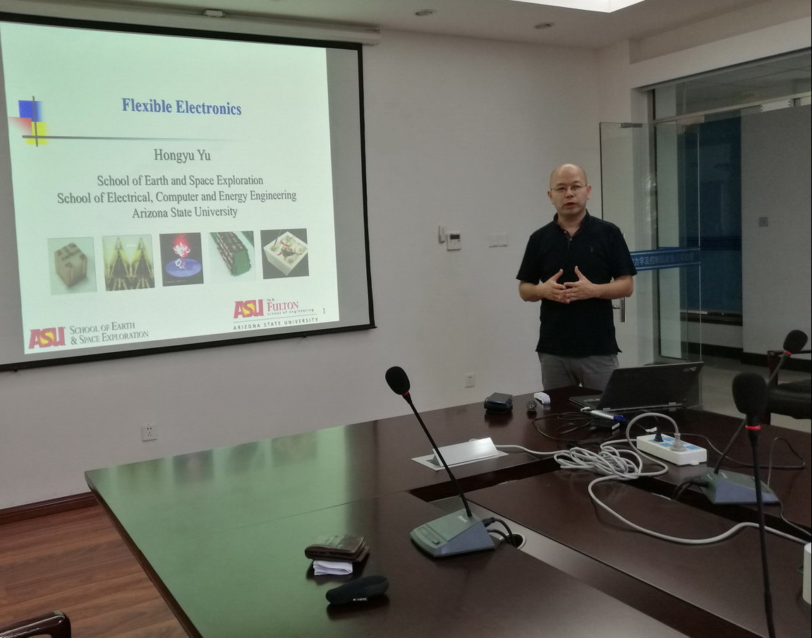 应公司航空宇航公司机械结构力学及控制国家重点实验室吴大伟教授邀请,美国亚利桑那州立大学Hongyu Yu教授于2017年6月9日至16日访问了公司,并于6月13日至14日分别为公司师生做了题为“Smart Structures for Space Exploration”、 “Flexible electronics”、“Film bulk acoustic resonators based sensors”、“MEMS fabrication, devices and applications”系列学术报告。报告内容丰富、生动、精彩,系统的介绍了MEMS技术前沿,MEMS器件在航空航天、医学中前沿应用及MEMS技术未来发展趋势等,对公司相关科研工作具有借鉴作用。吴大伟教授主持了报告会。