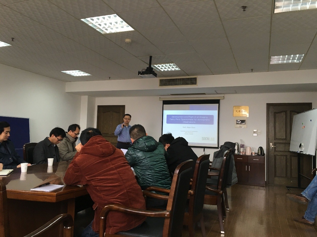 应公司航空宇航公司机械结构力学及控制国家重点实验室文浩教授邀请,约克大学陕晋军(Jinjun Shan)教授于2017年12月12日至13日访问公司,并于12月13日为公司师生做了题为“Development and Flight of an Imaging Fabry-Perot Spectrometer for Atmospheric Studies”的学术报告。陕晋军教授介绍了光谱仪技术在大气观测、分析领域的重要作用,报告了其课题组近年来在法布里-珀罗分光仪(FPS)的设计、研制和试验领域开展的大量工作,并分享了相关飞行试验的研究成果和重要经验。报告内容不但具有学术深度和高度,还十分详实、生动,对公司相关科研工作具有重要借鉴意义。同时,陕晋军教授还结合自己多年的研究经历,与现场听众分享了他在光学、控制、机械和力学等多学科领域的研究心得和体会。