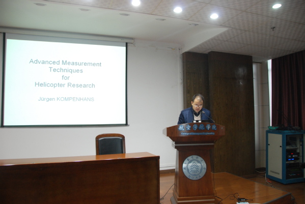 访问期间,Jürgen KOMPENHANS博士在招启军教授的陪同下参观了直升机旋翼动力学国家级重点实验室,还就双方共同关注的直升机桨涡干扰噪声测量、桨叶弹性变形测量以及风洞清洁技术问题与直升机系相关人员进行了深入的探讨和交流,并开展了相关的科研和学术讨论等一系列工作;就人员交流、航空工程专业学位研究生联合培养和开展进一步的科研合作等问题达成了初步合作意向。此次交流访问对于增强公司与德国宇航院之间开展学术交流以及合作研究将起到积极的促进作用。作学术报告,并探讨进一步了进一步合作的可能性。此次交流访问对于增强公司与德国宇航院之间开展学术交流以及合作研究将起到积极的促进作用。