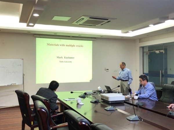 访问期间,Mark L. Kachanov教授还在钱征华教授的陪同下参观了公司机械结构力学及控制国家重点实验室,就双方共同关注的复合材料中的裂纹问题和力学在工程实践中的具体应用与钱老师课题组成员进行了探讨和交流,并开展了科研、指导研究和学术讨论等一系列工作,就人员交流、研究生联合培养、筹备国际学术会议、共同申请科研项目等问题与有关负责人达成了初步合作意向,对于增强公司与塔夫茨大学之间的进一步合作将起到积极的促进作用。