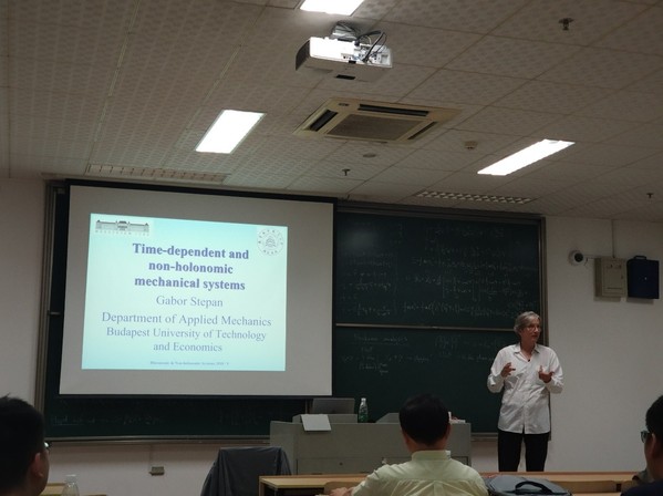 应公司机械结构力学及控制国家重点实验室王在华教授邀请,匈牙利布达佩斯工业与经济大学应用力学系Gabor Stepan教授于2018年5月12日至28日来公司学术访问,并于2018年5月13日-26日为公司师生做了题为“Time-dependent and non-holonomic mechanical systems”的系列学术报告。报告内容为时变系统和非完整系统的动力学建模与分析以及相关工程应用问题。报告内容丰富、精彩生动,得到了听课师生的广泛好评。