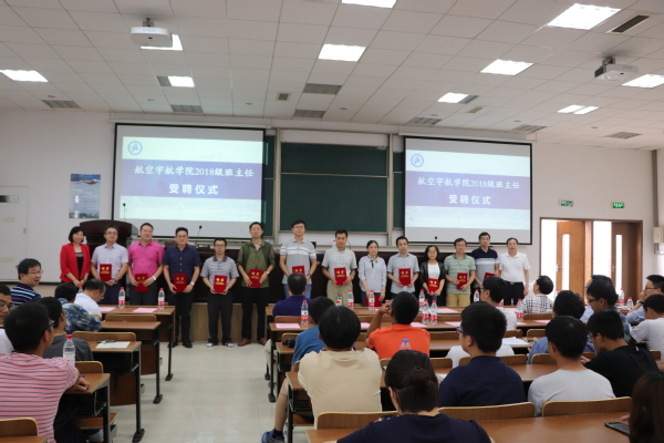 副书记许静介绍了航空宇航公司班主任、优秀生导师制度的实施情况,并宣读2018级班主任聘任名单。经理夏品奇与党委书记冯绍红为班主任颁发聘书。