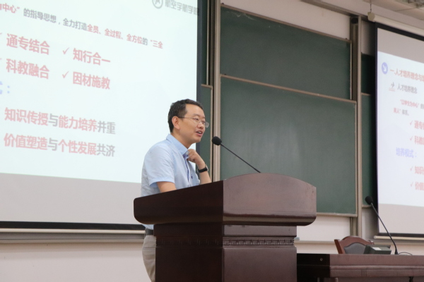 经理夏品奇介绍了航空宇航公司的基本概况。他首先对同学们通过努力为公司赢得“2018年军训工作先进单位”荣誉表示祝贺,并从悠久的公司历史、雄厚的学科基础,到范绪箕、张阿舟、王适存等名师大家故事,再到追求卓越的公司特点、特色的人才培养模式等,耐心、细致地为同学们一一介绍。与此同时,夏品奇勉励同学们胸怀大志,会思考有远见,勤奋刻苦,养成读书的好习惯,培养创新精神和实践能力,锻炼身体、朝气蓬勃、积极向上!