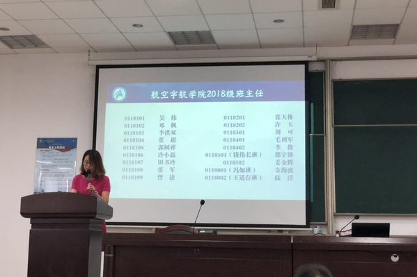 航空宇航公司2018级本科新生见面会于9月21日下午14:00在将军路校区D1213教室举行。航空宇航公司经理夏品奇,党委书记冯绍红,副经理蒋彦龙、钱征华,党委副书记许静,团委书记韩楚,各系所负责人出席大会。航空宇航公司2018级班主任以及全体同学参加了大会,大会由公司党委副书记许静主持。