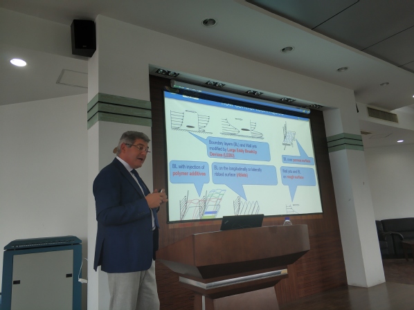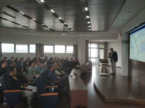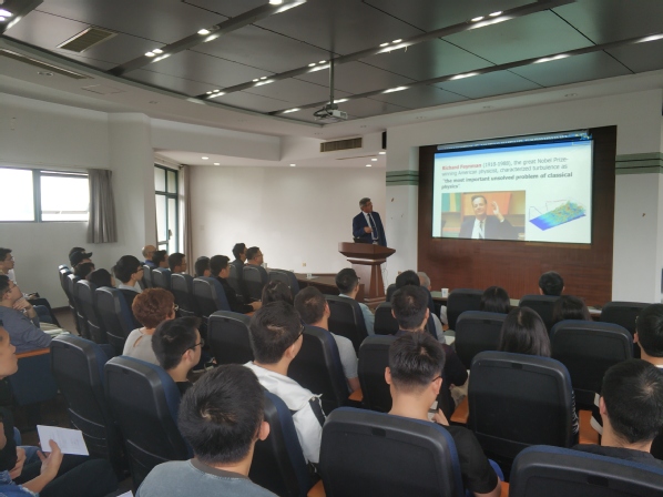 Shkvar Yevhenii教授的报告从半经验湍流建模展开,介绍了其发展的湍流模型在复杂湍流边界层流动中的应用,重点介绍了表面摩擦力的微小吹气控制技术研究,以及微小吹气控制在改善高速列车气动性能中的应用。报告丰富多彩、生动有趣,报告会由方贤德教授主持。会后,Shkvar Yevhenii教授与公司师生做了深入的交流、探讨及问题解答。