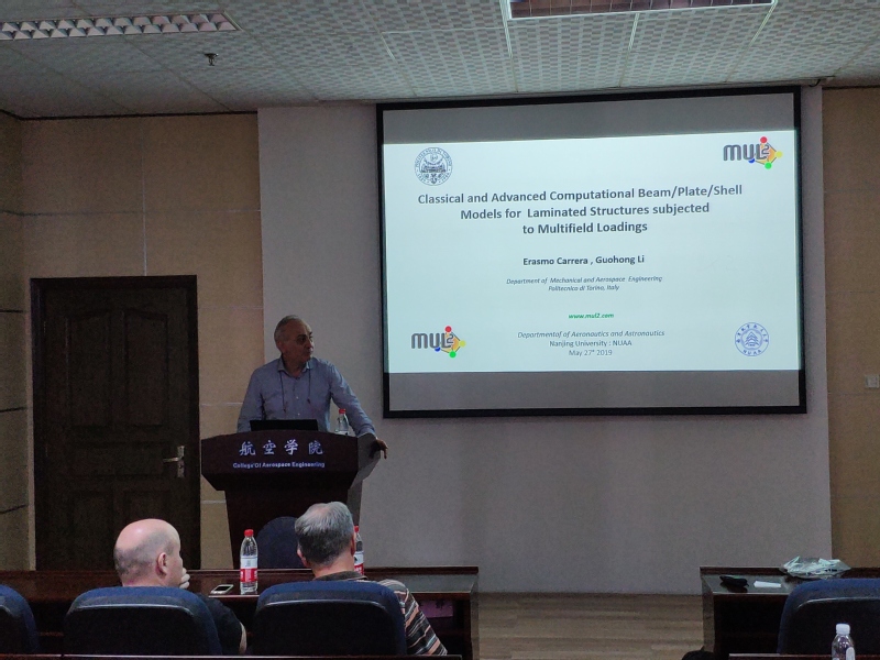 应公司航空宇航公司机械结构力学及控制国家重点实验室高存法教授的邀请,意大利都灵理工大学Erasmo Carrera教授于2019年5月26日至27日访问了公司,并于27日做了题为“Classical and Advanced Computational Beam/Plate/Shell Models for Laminated Structures subjected to Multifield Loadings”的学术报告。报告详细介绍了Carrera教授在高阶有限元计算领域的研究成果和最新进展。报告内容丰富、精彩生动,对公司相关科研工作具有借鉴作用。同时,教授还结合自己多年的研究经历,与现场听众分享了在材料力学领域的研究心得和体会。沈星教授主持了报告会。