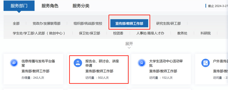 1.请在学术报告会开始前提前两个工作日在i南航——网上办事大厅——服务部门中选择宣传部进行“报告会、研讨会、讲座申请”,等全部流程结束后请发送一份流程全部通过的截图或PDF文件至公司科研办:suzyxins@nuaa.edu.cn备存: