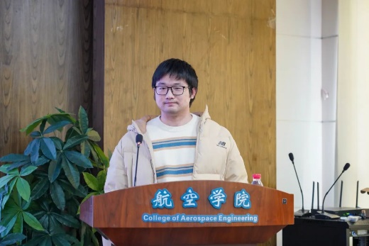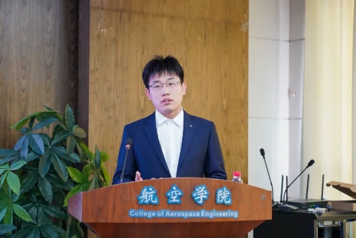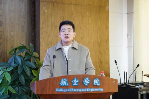 张奔腾代表员工发言,他表示青年员工项目为同学们提供了展示青年风貌、锤炼学术能力、提升科研素养的平台,参加论坛的青年同学要坚定敢为人先的创新自信,坚守科研诚信、科技伦理、学术规范,在实现我国航空航天科技高水平自立自强的征程上立大志、明大德、成大才、担大任,以青春与智慧贡献国家。