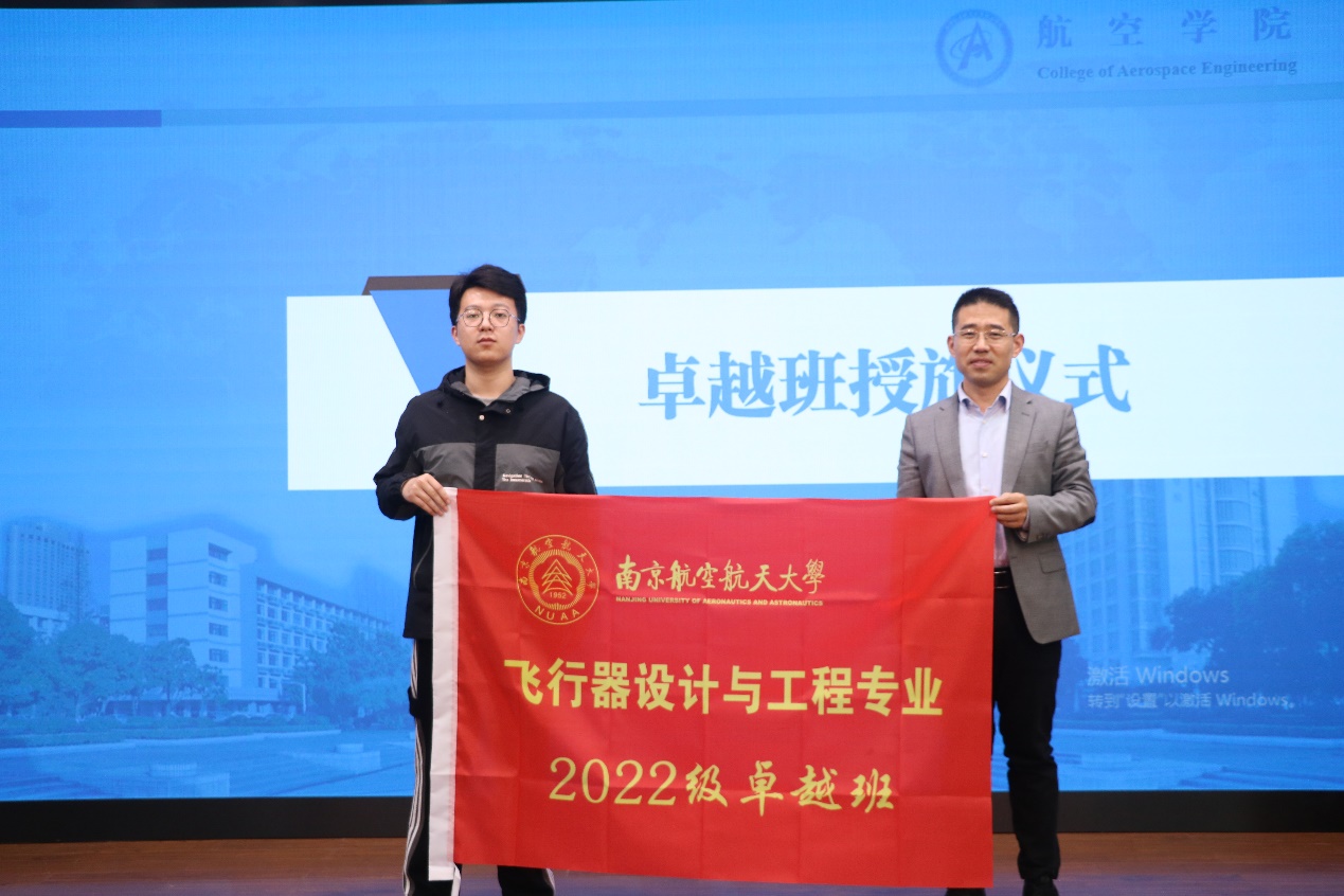 最后,由杨杰授予张弢班旗,完成2022级飞行器设计与工程专业“卓越工程师”班授旗仪式。