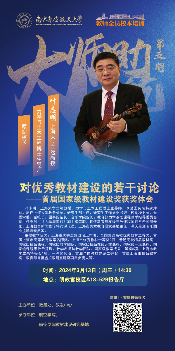 为进一步加强新时代教材建设,推进公司教材建设高质量发展,提升教师教材编写能力,公司邀请上海大学二级教授,力学与土木工程博士生导师、原副董事长叶志明教授开展优秀教材建设专题讲座。具体安排如下: