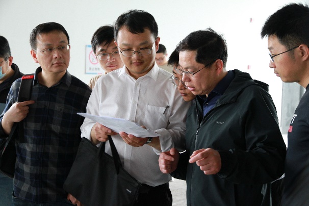在国际创新港建设管理办公室副主任徐永利、六合高新区负责同志等人的陪同下,董昊一行首先参观了创新港B4栋楼,并就公司拟入驻的实验室功能区域划分、地面承重、电气负荷以及设备入驻流程等事项进行了现场交流。