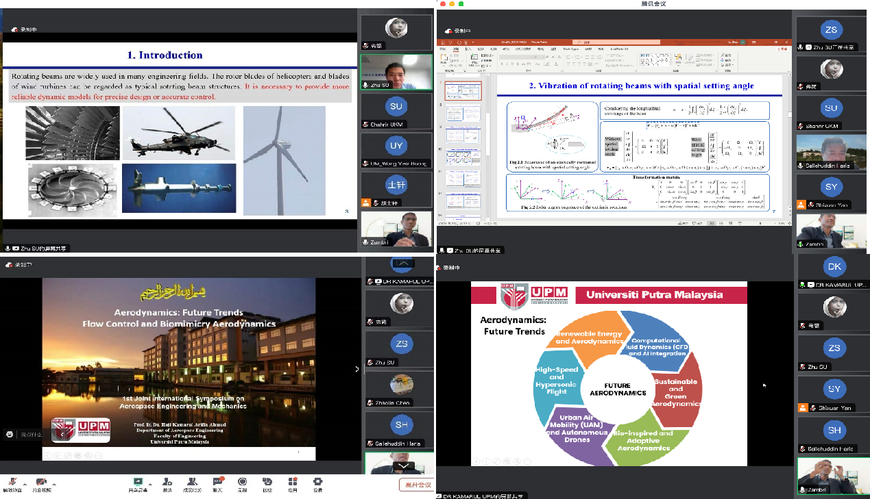 本次会议共有十三个报告,报告内容涵盖了纳米流体热分析,具有一般边界条件的旋转梁的动力学分析,空气动力学当前趋势与未来展望,飞机结构振动主动控制,纳米电子材料在航空航天应用中的未来,Ti-6Al-4V电子束熔化过程的局部模型研究来估计残余应力引起的变形,基于标记的无人机导航控制与机器人操作系统,航空航天用聚碳酸酯的环境应力开裂,火星对旋翼系统气动性能的实验与数值研究等主题。共有近40名师生在线聆听报告并参与讨论。