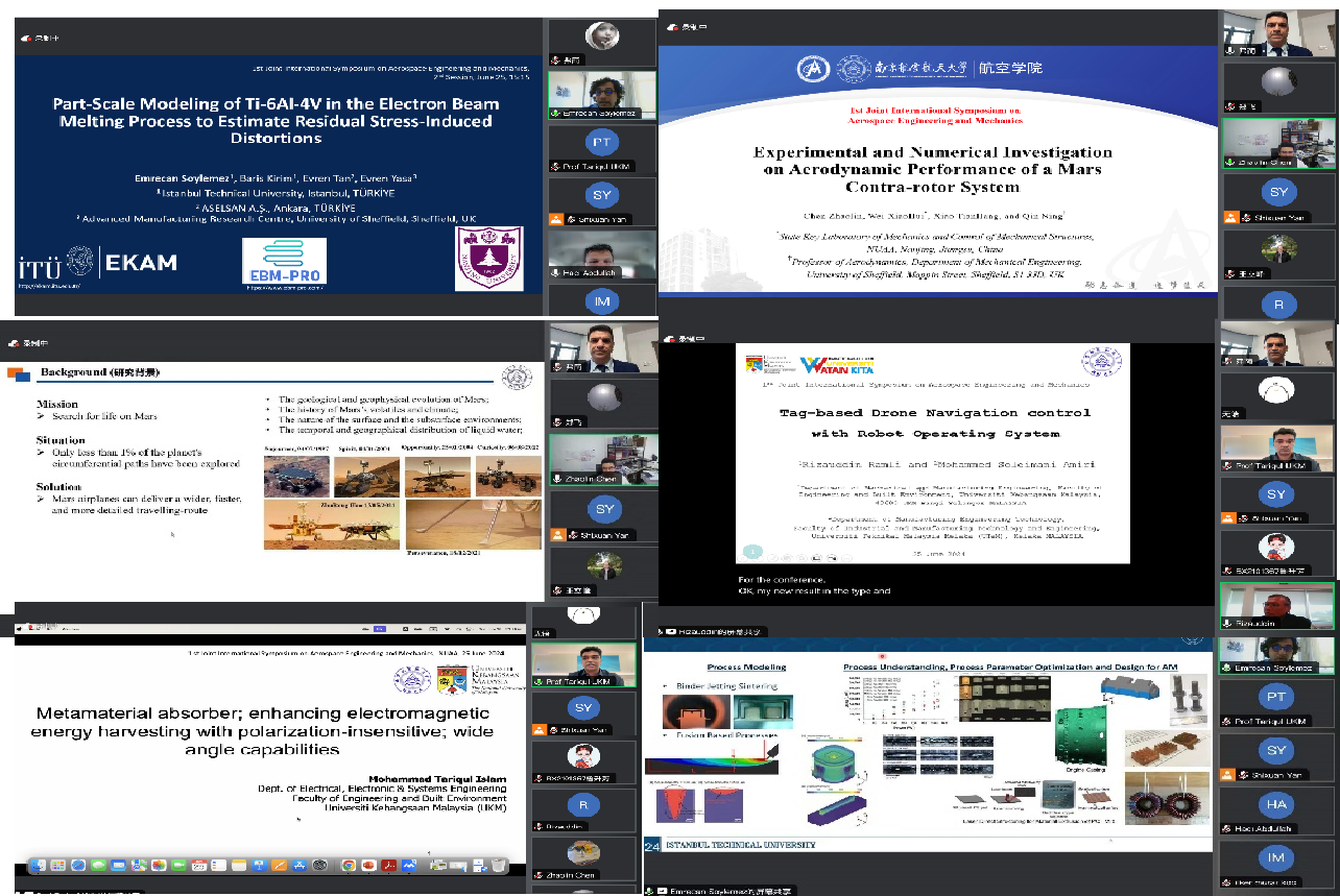 2024年6月25日,第一届航空航天工程与力学国际研讨会(International Symposium on Aerospace Engineering and Mechanics, ISAEM)在线上召开。本次会议由永利3044集团官网主办,由马来西亚国立大学、马来西亚博特拉大学,马来亚大学,伊斯坦布尔科技大学联合承办。永利3044集团官网经理魏小辉,副经理王立峰出席会议。