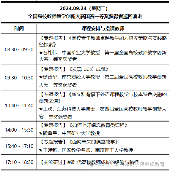 2024年江苏省本科院校新教师教学能力提升培训日程安排