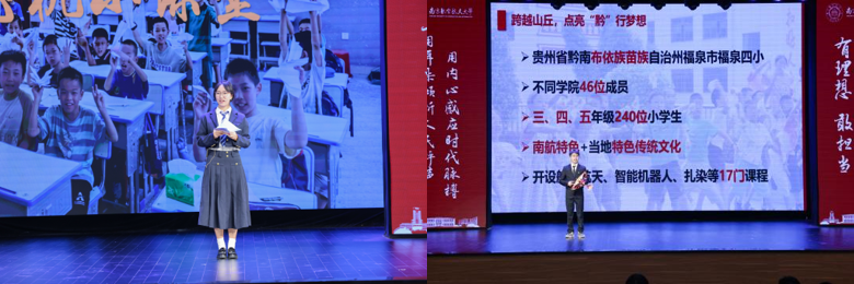 “绘梦蓝天”实践团奔赴江西赣州、河南洛阳、四川南充,走进乡镇村落、地方中学,深入当地社区提供服务,走访航空科工企业,播撒航空报国夏种,赓续红色基因血脉,为蓝色梦想绘制空天底色。“筑梦黔行”实践团前往云贵高原,为黔南布依族苗族的孩子们带去航空航天梦,扎染、绘画、音乐、智能机器人等丰富多彩的课程开拓了孩子们的视野,在孩子小小的心灵之中种下梦想的种子。