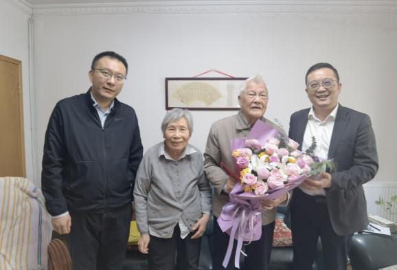 公司领导来到98岁的乔新老师家中,亲切地与乔老师亲切交谈,闲聊家常。乔老师精神矍铄、面色红润,言语清楚、思路清晰,脸上始终洋溢着喜悦的笑容,他表示能够在这样一个特殊的日子收到来自公司的祝福,倍感荣幸和幸福。