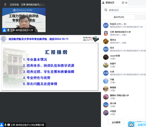 10月11日,永利3044集团官网组织了工程力学专业自评估专家意见反馈会,三位专家通过线上方式对工程力学专业的自评估意见进行了反馈,并就如何改进和提升工程力学专业建设进行了深入的交流。