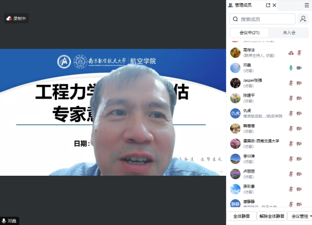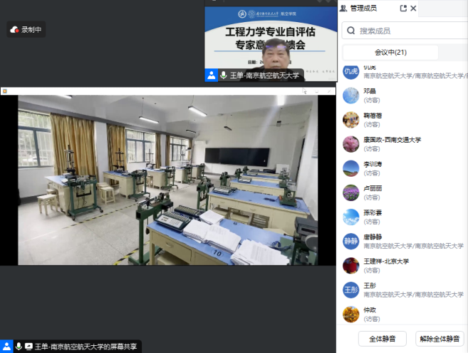 随后,专业负责人高存法向评审组专家汇报了工程力学专业的基本情况、培养体系、专业特色、存在问题及改进思路等,并播放了工程力学专业教学实验室介绍视频,通过线上方式对基础力学实验中心的实验条件进行了展示。