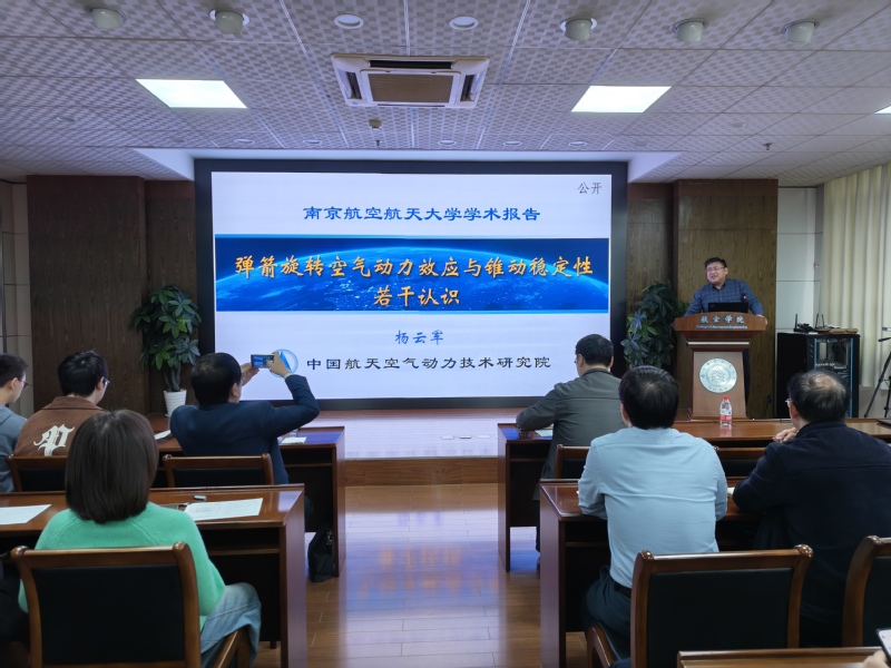 应公司航空航天结构力学及控制全国重点实验室和非定常空气动力学与流动控制工信部重点实验室董昊教授的邀请,中国航天空气动力技术研究院杨云军研究员于2024年10月31日做了题为“弹箭旋转空气动力效应与锥动稳定性的若干认识”的学术报告。报告会由董昊主持,全院近百名师生参会。