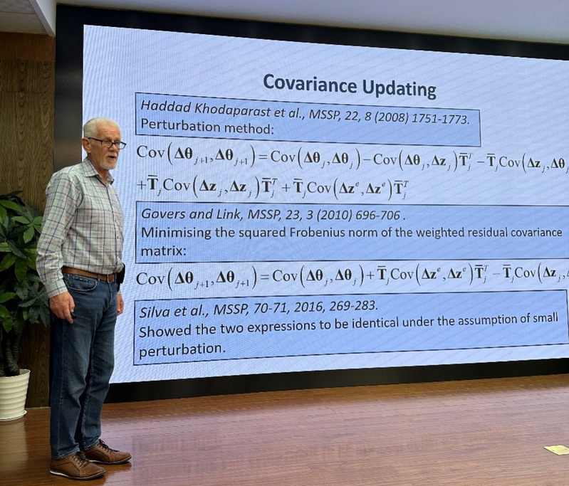 应航空航天结构力学及控制全国重点实验室、永利3044集团官网振动工程研究所何欢教授邀请,英国利物浦大学应用力学系教授John Mottershead于2024年10月28日-2024年10月29日期间访问公司,为师生们带来了题为“Eigenvalue Assignment by Structural Modification”“Eigenvalue Assignment by Active Contro”“Sensitivity-Based Model Updating”“Stochastic Model Updating with Sensitivity Methods”4场精彩纷呈的学术报告。报告现场气氛活跃,受到师生们一致好评。