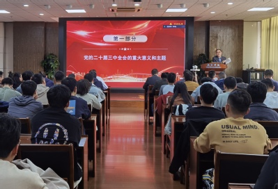 为深入学习贯彻党的二十届三中全会精神,根据公司党委统一部署,11月13日下午,永利3044集团官网在明故宫校区举行学习宣传党的二十届三中全会精神校内宣讲团报告会,宣讲团成员、发展研究中心主任孔令华应邀为公司师生作专题辅导报告。公司党委理论学习中心组成员、师生党员代表、入党积极分子及院机关工作人员等参加主会场报告会,各系所党支部在分会场组织收看学习,公司近140名师生参加了学习。公司党委书记卜建主持宣讲会。