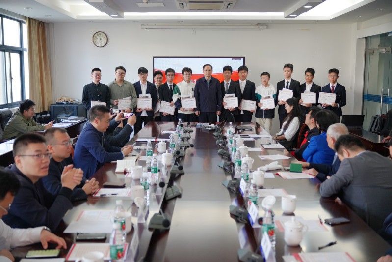 随后由赵院士为同学们赠送自传,张董事长为同学们颁发了立项证书。仪式的最后由12名项目负责人对项目进行了开题汇报并由各指导教师进行指导和讨论。赵淳生科技奖励基金创新项目旨在以学术引领创新,将学科优势与人才培养相结合,为公司本科生提供科研创新平台,培养员工自主科研创新意识,助力公司精密驱动技术的生源储备和人才培养。