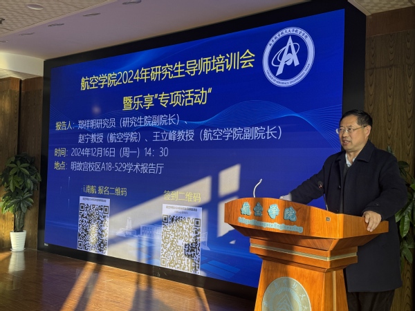 2024年12月16日下午,永利3044集团官网举行了2024年度研究生导师培训会,研究生院副经理郑祥明研究员、永利3044集团官网副经理王立峰教授、空气动力学系赵宁教授、新上岗的导师以及教学办相关人员等40余人参加了此次培训会。会议由王立峰主持。