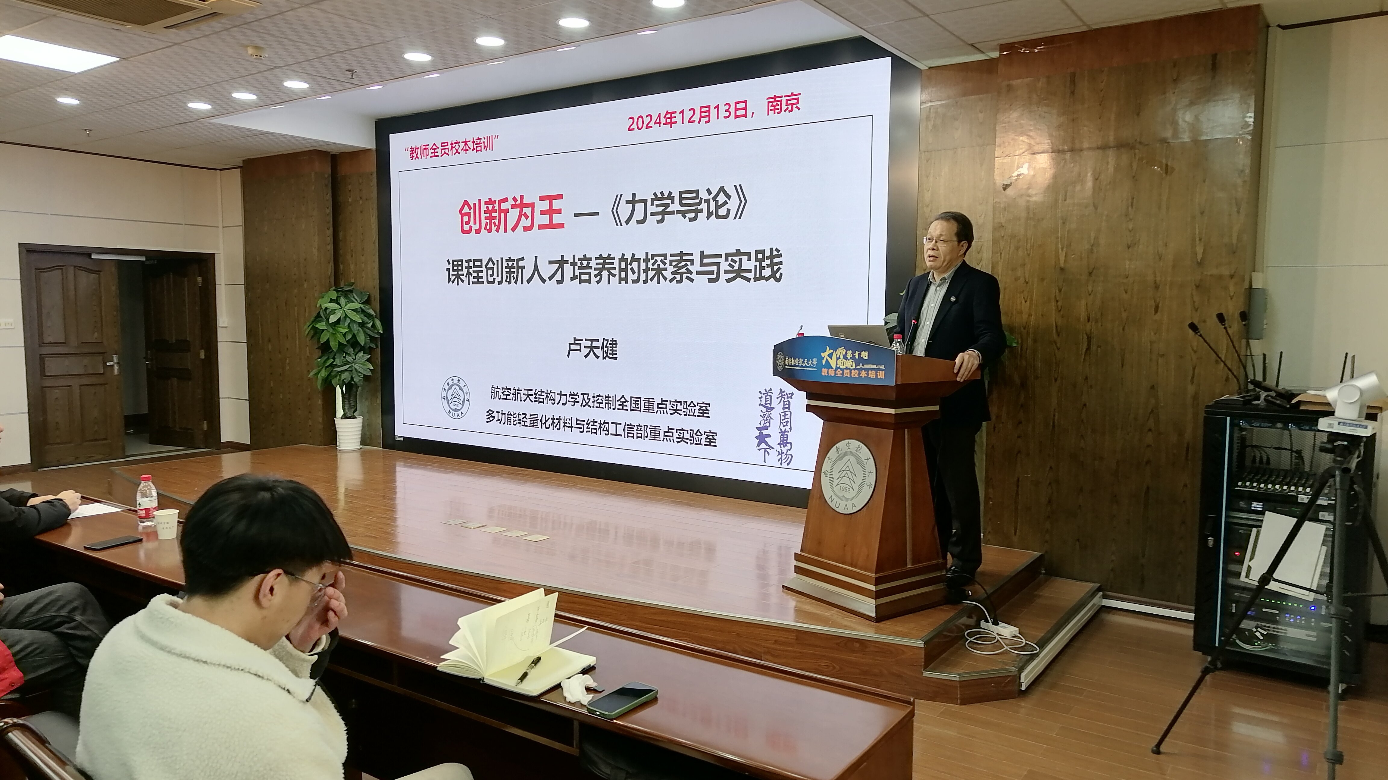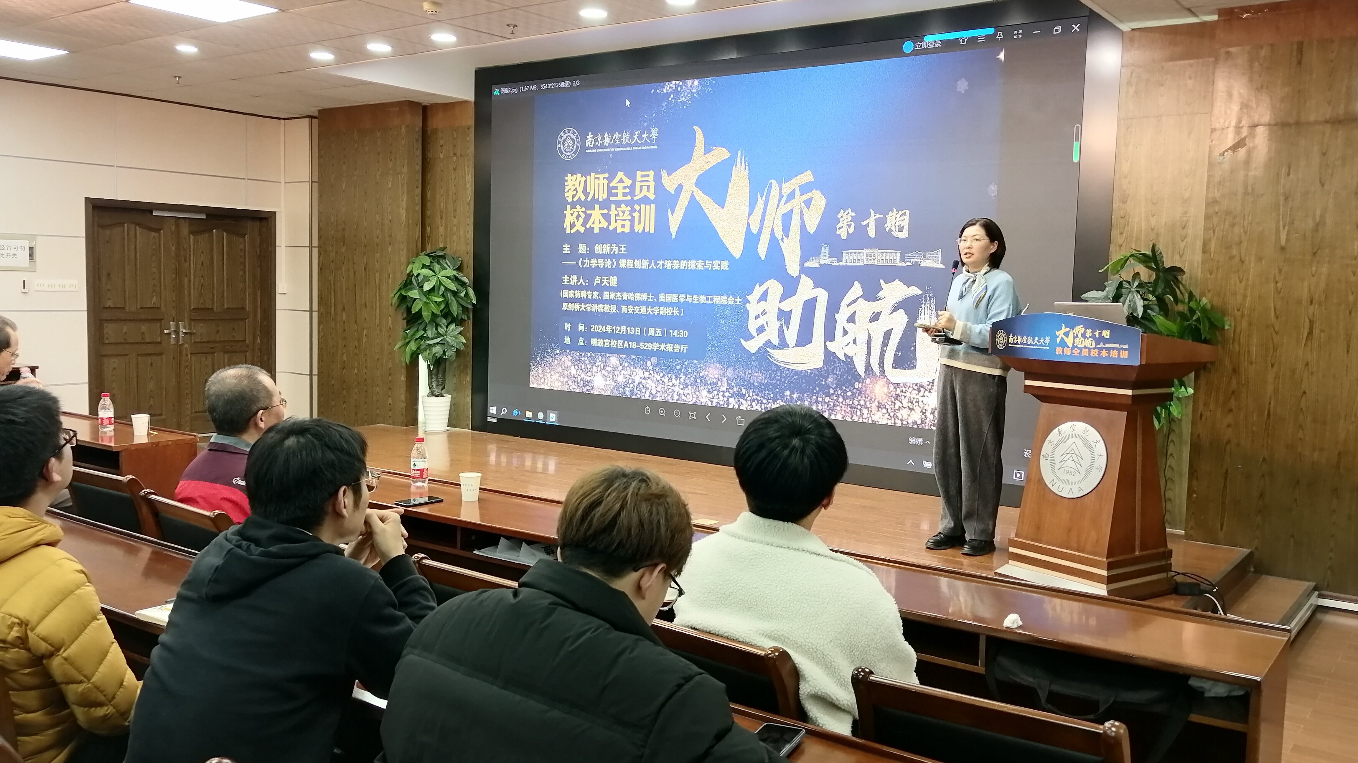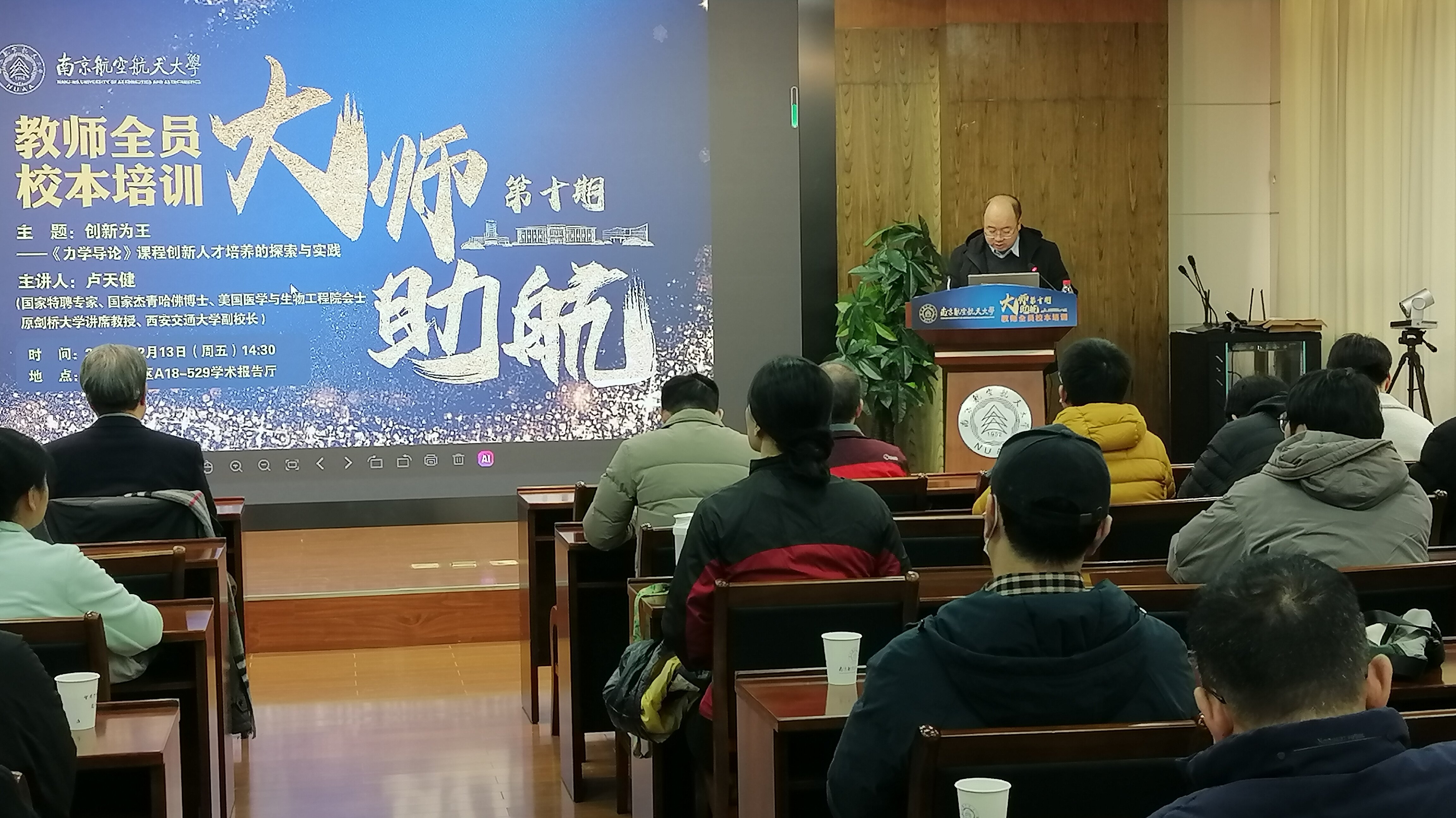 此外,卢老师还指出,大学教师从事的是太阳底下最光辉的事业,除了传承知识,还应传承伟大的中华文明和文化,培养造就德才兼备、高度文化自信的一流拔尖人才,并分享了他以身作则给员工写春联、教员工进行书画创作、分享健康养生技巧等事迹。