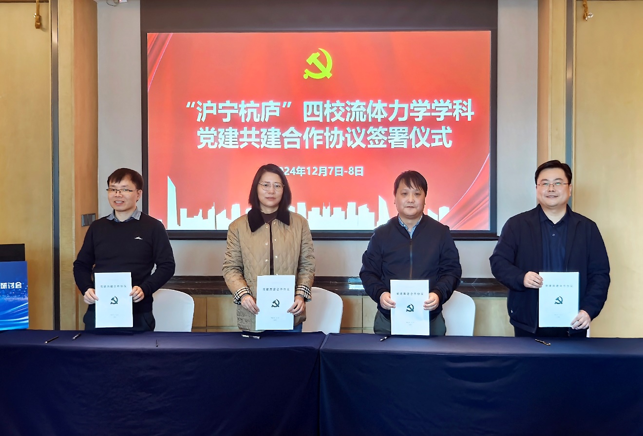 为落实科技强国使命,推动中国特色社会主义现代化高等教育的战略目标,加强创新载体组织研究,探索管理创新、资源共享等有效途径,充分发挥“沪宁杭庐”四地流体力学支部党建的整体合力,增强凝聚力和战斗力,结合实际工作,进一步推动“以党建促业务”战略。2024年12月7日至8日,上海交通大学船舶海洋与建筑工程公司流体力学教工党支部、中国科学技术大学近代力学系流体力学教工党支部、永利3044集团官网空气动力学系教工党支部和浙江大学航空航天公司流体工程研究所教工党支部在上海联合举办了“支部共建聚合力,同心互联促发展”党支部共建活动,并签署了“党建共建合作协议”。