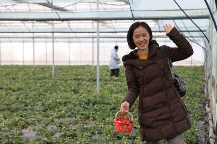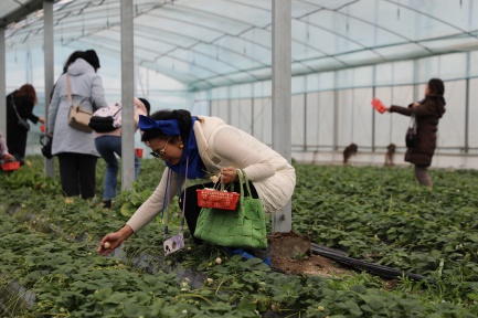 游览结束后,大家迫不及待走进草莓种植大棚,开始期待已久的采摘。棚内清新的果香扑面而来,翠绿的枝叶间缀满鲜红饱满的草莓,令人心旷神怡。女教职工们手提小篮,穿梭在田垄间,一边挑选成熟的果实,一边交流采摘技巧,欢声笑语此起彼伏。许多人拿出手机记录下同事互助采摘的温馨画面,或是拍摄红绿相映的田园美景。“平时忙于工作和生活,难得有机会走进自然放松身心。亲手采摘的草莓格外甜,心情也像这天气一样明媚!”机关刘伟清老师捧着满篮果实,笑容灿烂地说道。