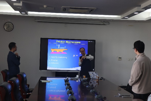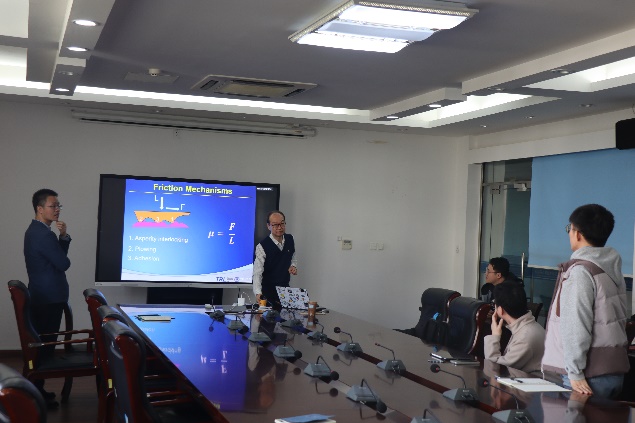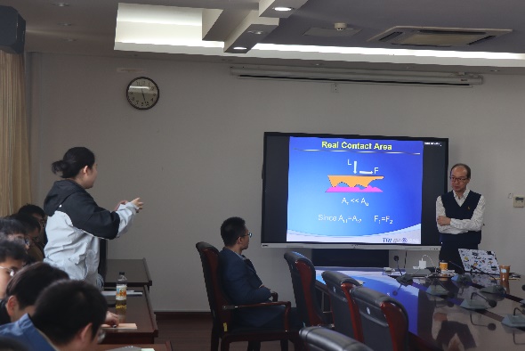 在报告中,Dae-Eun Kim教授针对如何最小化微纳系统中的摩擦和磨损问题,从微观尺度分析了原子间动态摩擦过程中的相互作用,讨论了摩擦和磨损的基本机制,指出摩擦学对节能环保以及减少资源浪费的重要意义。报告深入浅出,从摩擦的产生到降低摩擦的多种方法,用简明生动的语言清晰讲解了微观尺度下的摩擦学行为及其磨损机理。与会师生结合自身科研实际,就超声电机增摩减磨机理、材料选择及未来发展方向等方面,与Dae-Eun Kim教授进行了热烈交流。